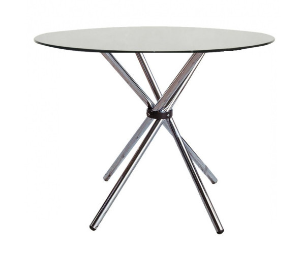Обідній стіл круглий скляний, стільниця із загартованого прозорого скла товщиною 8 мм, що робить цю модель легкою в сучасному інтер'єрі, металеві ніжки з покриттям із нержавіючої сталі, розмір столу: діаметр стільниці 80 см, висота 75 см.
