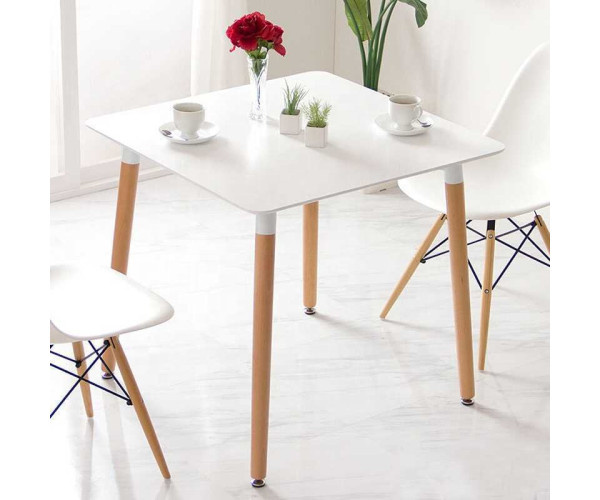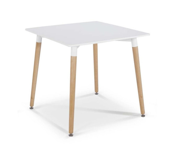Обідній стіл, стильна модель для кухні, кафе, ресторану, стільниця з матеріалу ламінований МДФ, квадратна стільниця, товщина 15 мм, дерев'яні ніжки з масиву натурального дерева бук, світлий відтінок, регульовані ніжки по висоті, розмір столу: ширина 80 см, глибина 80 см, висота столу 74 см.
