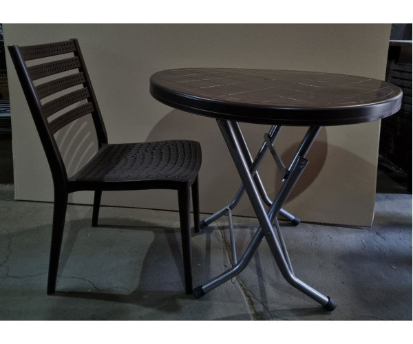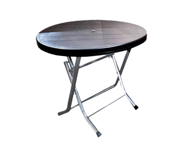 Стіл розкладний круглий виготовлений з матеріалу поліпропілен, не боїться вологи та перепадів температур, також у матеріал стільниці додано добавки для захисту від ультрафіолетових променів та антистатичні добавки, основа зроблена з металлу і покрита порошковою фарбою, стіл підходить для зовнішнього використання, стіл можна скласти для комфортного зберігання і транспортування, догляд за столом за допомогою звичайних миючих засобів, протирати ганчіркою, розмір столу: діаметр стільниці 80 см, висота 75 см. Вага 8 кг
