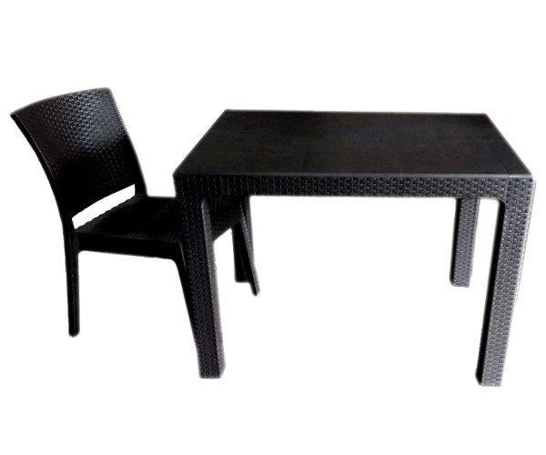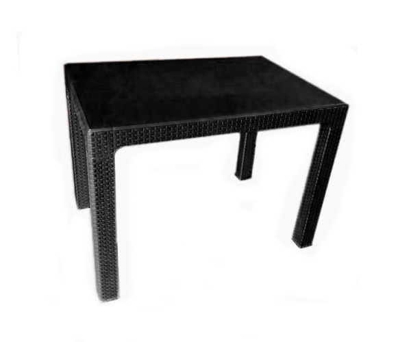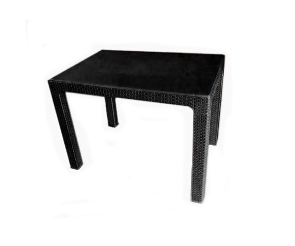 Стіл пластиковий прямокутний, матеріал поліпропілен, імітація ротанга, ультрафіолетовий захист, не вигоряє, стійкий до перепадів температур, вологи, штабелюється, ставиться в стопки, розмір столу: ширина 70 см, довжина 100 см, висота 75 см. Застосування всередині приміщень, кафе бару, тераси, на вулиці, на дачі. Вага 11 кг