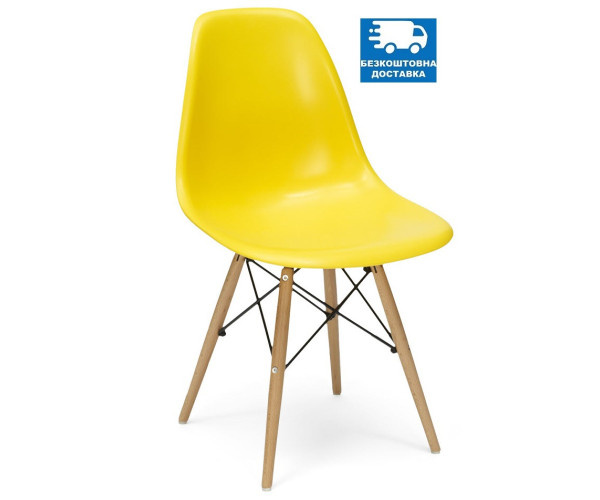 Стілець пластиковий, матеріал поліпропілен, ніжки дерев'яні, дерево бук, покриті прозорим акриловим лаком, між ніжками металеві прути, пофарбовані чорною епоксидною фарбою, сучасний дизайн, розмір стільця: ширина сидіння 46 см, глибина сидіння 42 см, висота стільця від підлоги до верху спинки 82 см, висота від підлоги до сидіння 43 см. Цей стілець придумали більше півстоліття тому і він досі залишається одним із найзручніших стільців у світі. Свого часу він став першим стільцем із пластику, і саме з нього почалася мода на доступні дизайнерські меблі. Унікальність стільців у стилі Eames – це висока функціональність та універсальність сучасного стилю, що дозволяє використовувати його в абсолютно різних за дизайном та призначенням приміщеннях. Кількість у коробці: 4 од.