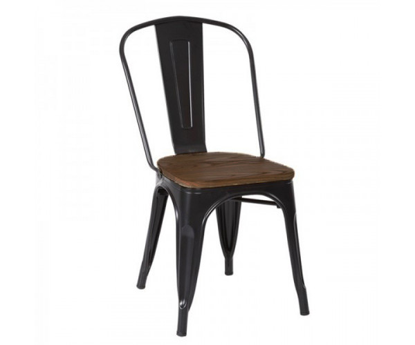 Стілець металевий, фарбований колір чорний, зручна висока спинка, стілець ставиться в стопки, стул, що штабелюється, дерев'яне сидіння сосна, розмір стільця: ширина 45 см, глибина сидіння 37 см, висота спинки 43 см, загальна висота стільця 84 см, висота від підлоги до сидіння 44 см.