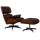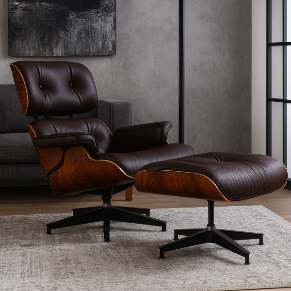 Розкішне крісло з отоманкою Релакс – це втілення архітектурного стилю сучасної епохи, королівський дизайн та максимальний комфорт із високоякісними матеріалами, якістю виготовлення за найвищими стандартами. Сидіння, спинка з підголовником та підлокітники виготовлені з 7 шарів формованої гнутої фанери, шпон колір палісандр або рожеве дерево, а сполучні деталі створюють унікальну форму, матеріал оббивки натуральна шкіра. Подушки сидінь з'єднані за допомогою чорної застібки, яка вшита по зовнішньому краю, для амортизації використовуються гумові шайби. Внутрішня підтримка забезпечується за рахунок вбудованих роликів та спеціальних кілець. Крісло оснащене опорами, що амортизують, що забезпечують максимальний розкішний комфорт, і цей привабливий ефект спонукає вас поринути в відкидне сидіння. Основа – ніжки металеві чорного кольору. Крісло та отоманка широко використовуються у вітальнях та офісах та виділяється поєднанням матеріалів та дизайном. Розмір крісла 87*87*84 см, розмір отоманки 65*54*44 см.